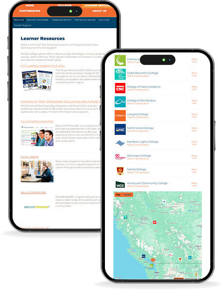 The site was designed mobile-first to reflect BC Colleges’ provincial scope, ensuring consistent functionality across all devices. -