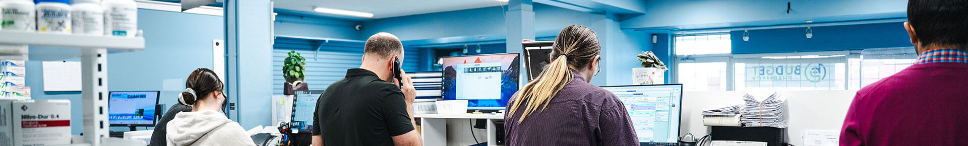 Owner Justin Pagan and staff at Budget Pharmacy